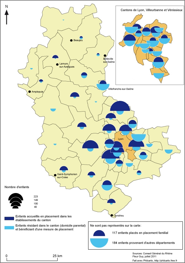Figure 1 : Localisation des établissements de placement dans le Rhône