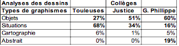 Figure 9 : Synthèse des types graphiques utilisés selon les trois collèges