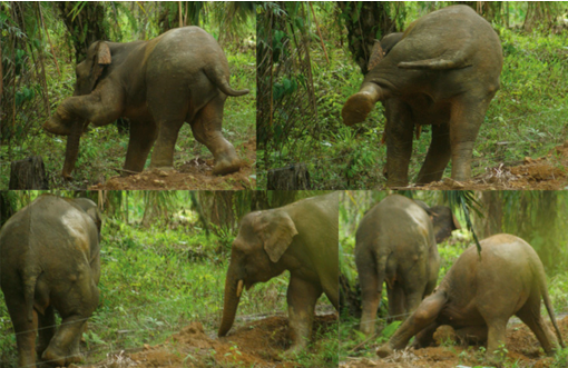 Figure 4 : Eléphants franchissant une clôture électrique de façon individualisée (Nurzhafarina Othman, in Bucknell, 2012) :