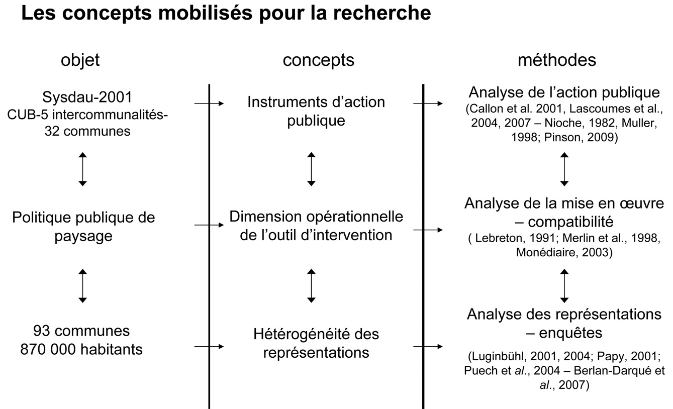 L’évolution réglementaire des années 1990 à 2000 a positionné le paysage comme élément fondant le cadre de vie dans les outils de planification territoriale. Les acteurs sont incités à les mobiliser dans un contexte territorial concurrentiel et de gouvernance multi-niveaux. Dès lors, se pose la question de l’identification des ressources de ces territoires de projet pour en développer l’attractivité. L’hypothèse principale de cette thèse a été de considérer que le paysage est mobilisé par les acteurs comme un levier d’action publique pour induire des logiques d’aménagement et justifier les fondements du projet de planification. Pour la démonter, nous avons voulu comprendre comment les acteurs d’un instrument de planification s’emparent du paysage pour organiser leur développement territorial sur l’aire métropolitaine de Bordeaux.