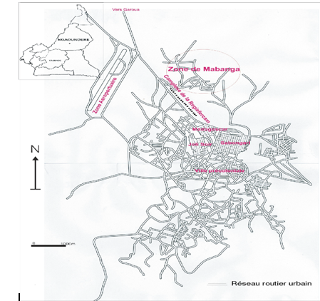 Figure 1 : localisation de Mabanga dans N’Gaoundéré matérialisée par le réseau viaire principal