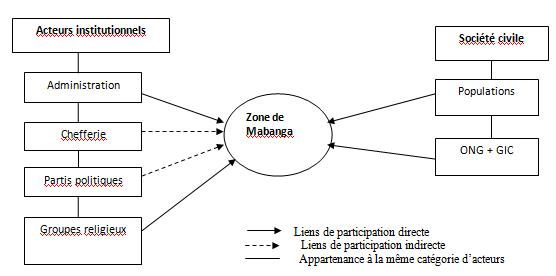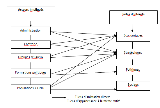 S’agissant des forces politiques en présence et de leur implication dans le site urbanisé de Mabanga, elles se distinguent et se comportent selon le schéma ci-après.
