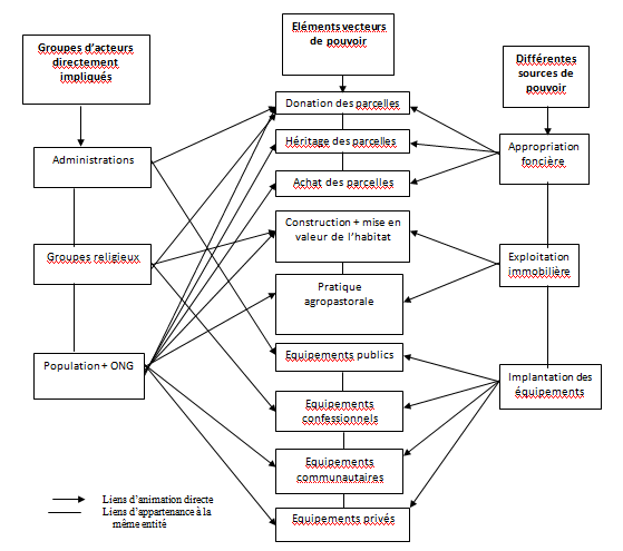 On retient que l’administration publique est l’acteur institutionnel premier dans l’urbanisation de ce secteur. La population l’est aussi parmi les intervenants de la société civile. On distingue des acteurs qui y participent directement (acteurs actifs), et indirectement (acteurs passifs).