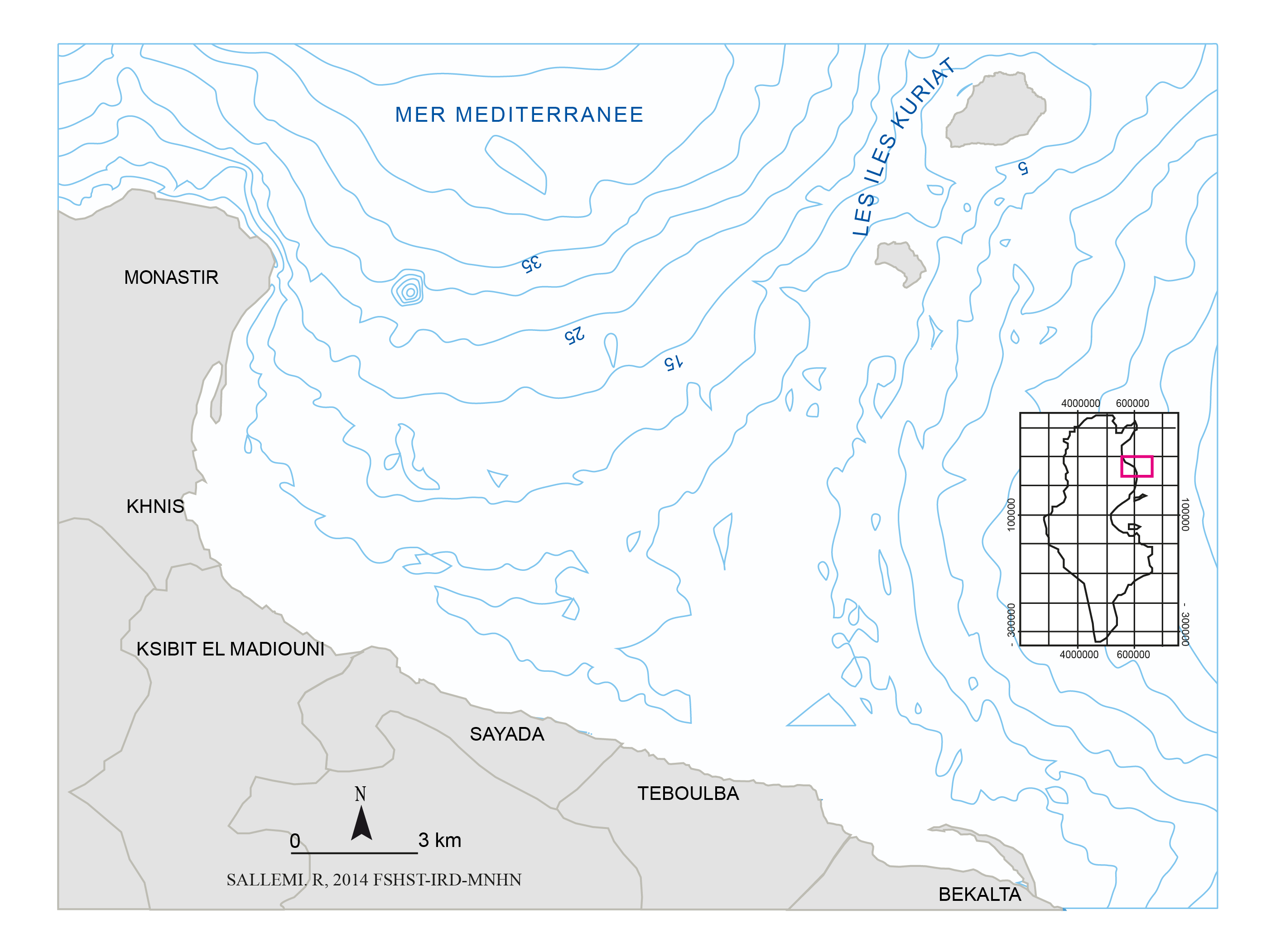 Figure 1 : contexte géographique de la baie de Monastir et des ßles Kuriat