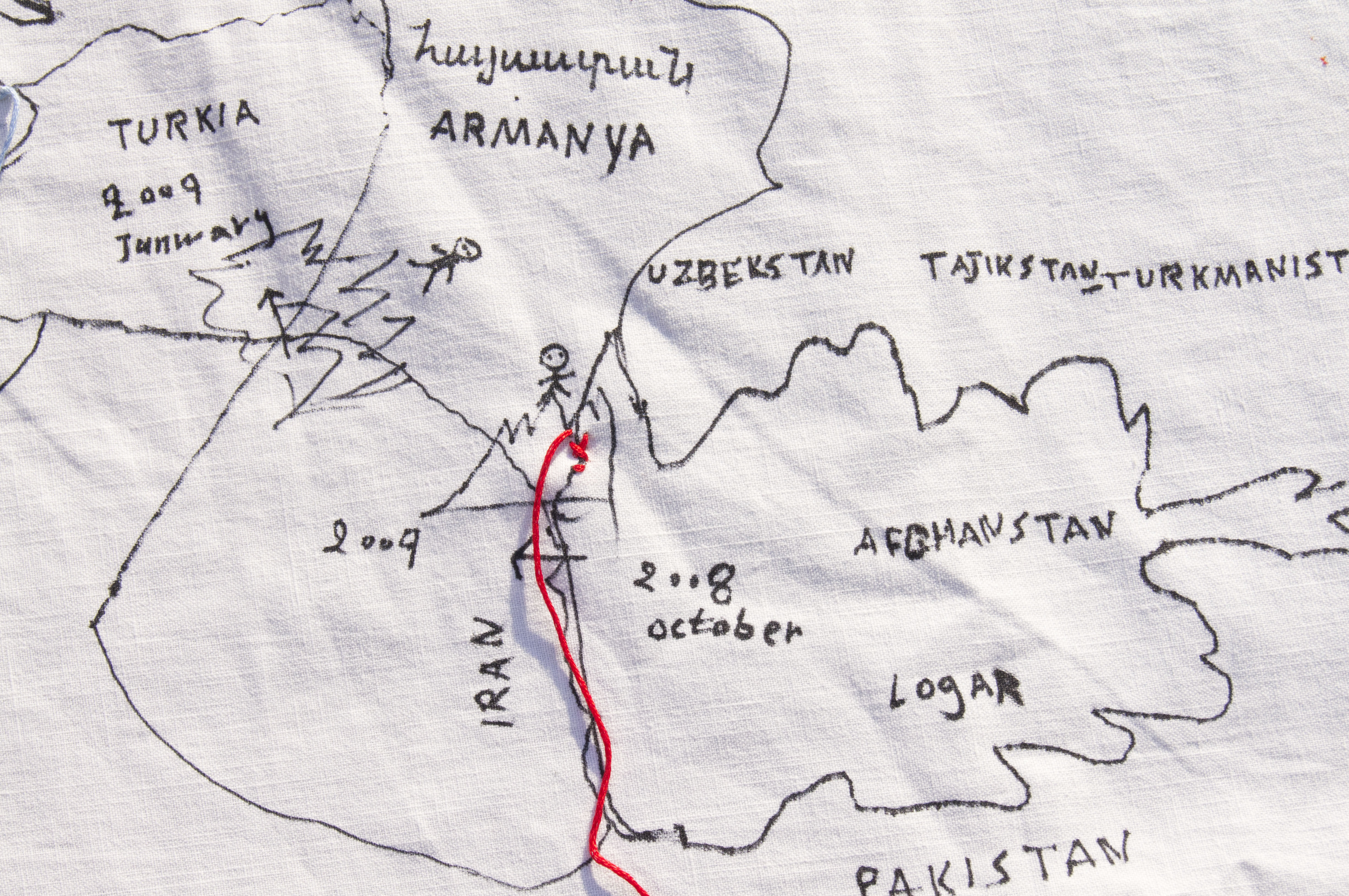 Des voyageurs, en situation de demande d'asile ou ayant obtenu le statut de réfugiés, des chercheurs, des travailleurs associatifs, des artistes se sont réunis deux fois par semaine, à Grenoble, pendant deux mois, entre mai et juin 2013, pour co-produire des cartes de voyages migratoires. Ces cartes figurent des fragments de souvenirs, des traces d’expériences des voyages et des franchissements frontaliers vécus par douze demandeurs d'asile ou réfugiés, qui habitent actuellement à Grenoble.
