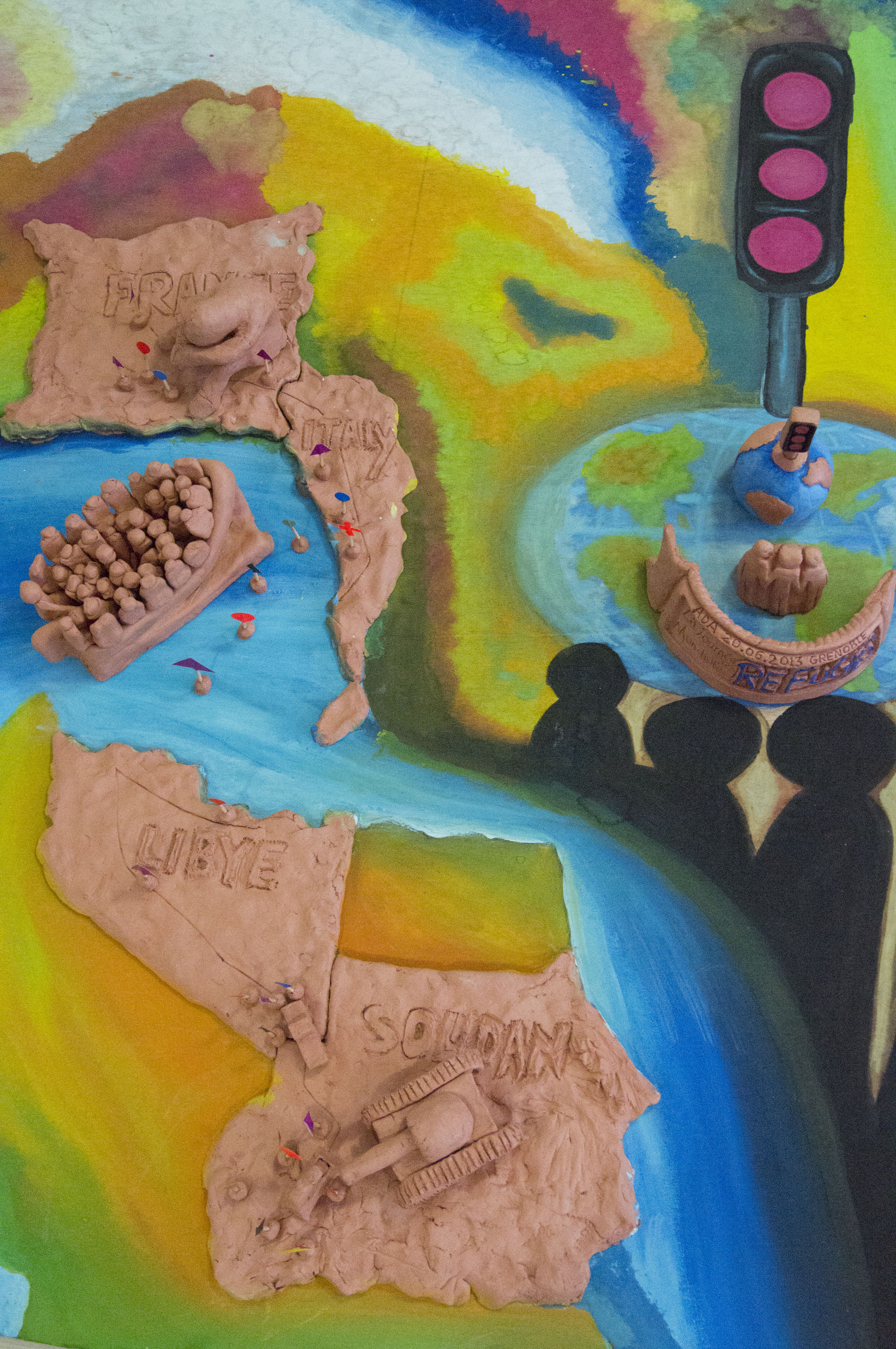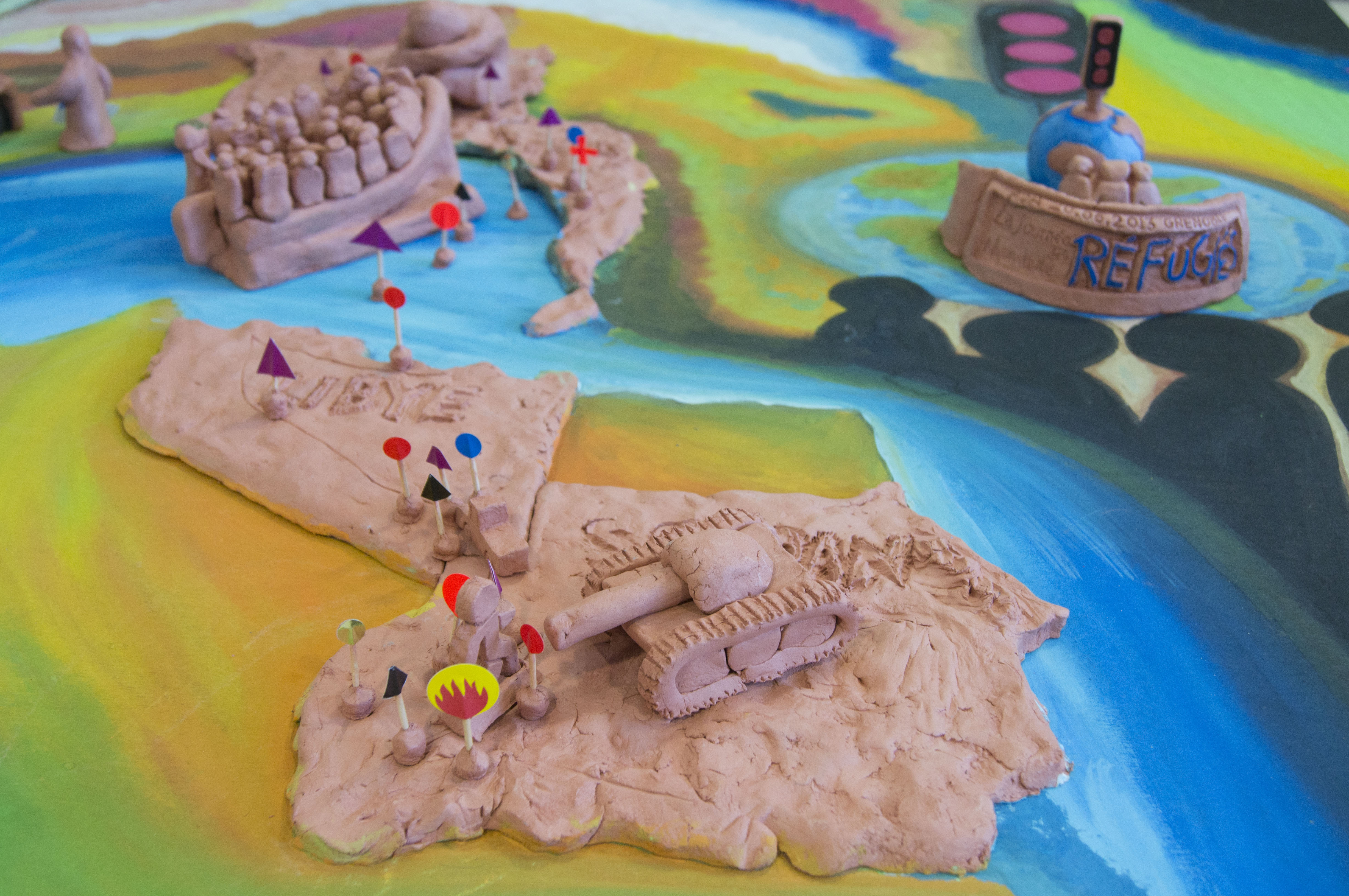 Carte réalisée par Gladeema Nasruddin, argile, bois, peinture, Grenoble, atelier de cartographie, juin 2013, photographies : Mabeye Deme