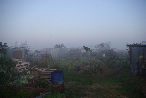 On y trouve également du maraîchage dans des jardins partagés et/ou ouvriers (figure 14), des rideaux d’arbres et des étendues de gazon. Toutes ces utilisations de l’espace et du sol côtoient l’habitat : des pavillons plus ou moins cossus le long de la digue de la Seine, des maisons pourvues de baux locatifs agricoles (qui ne correspondent plus à leur usage) et qui sont tout à fait hors nomes du point de vue sanitaire et électrique et des roulottes qui abritent une population de gens du voyage. Ainsi, tout cohabite : activités industrielles, déchets, loisirs et habitat (favorisé ou précaire). Des questions sur ces usages demeurent, quant à la manière dont ils apparaissent, trouvent leurs publics puis sont mis en récit et marquent les sites, pour faire de ces entre-deux, telle la plaine d’Achères, des espaces dont la disqualification démultiplie des usages.