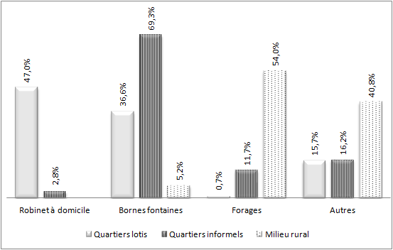 Figure 2 : Source d’approvisionnement en eau selon les zones d’habitation