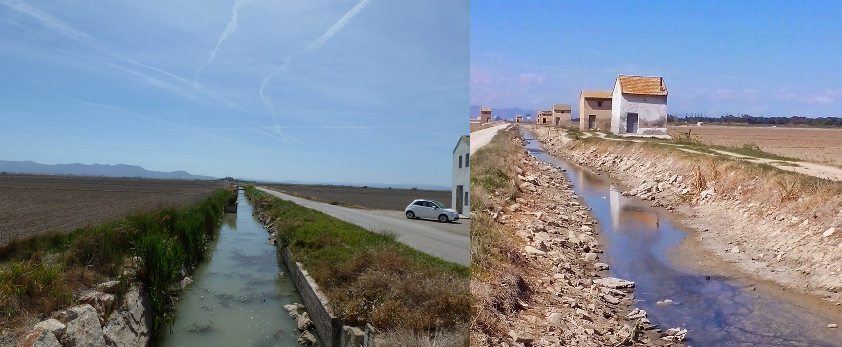 Figure 1. Visages de la zone humide rizicole, dite marjal, et ses canaux